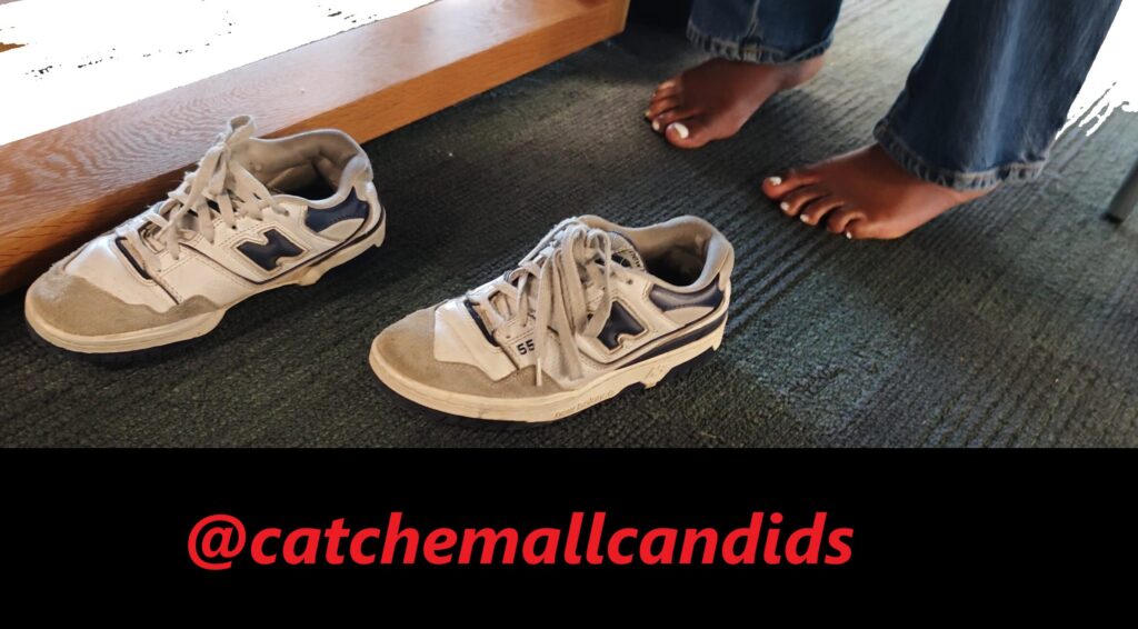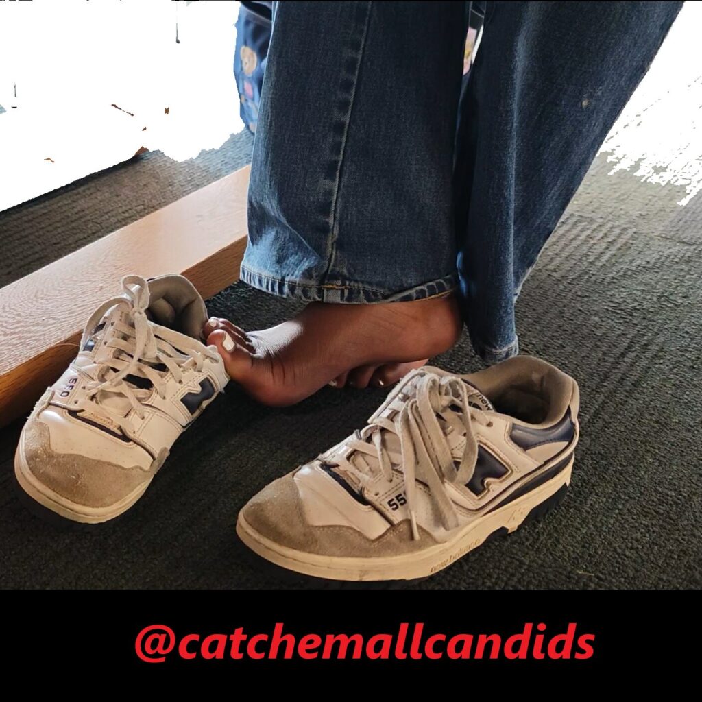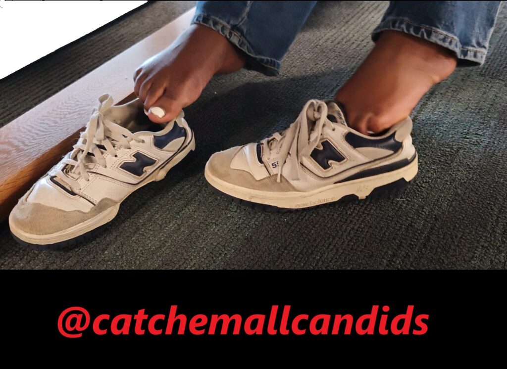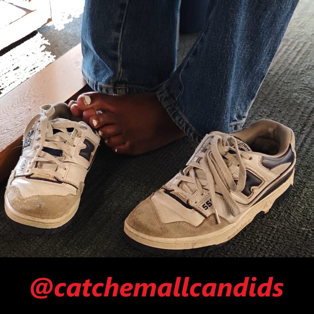 It’s not as common to get barefoot catches out of sneakers, especially out in the open like this. A warm 90 degree day, this ebony woman had her barefeet discarded out of her worn New Balance 550s. My only regret was not coming earlier to get a longer video, you great shots of her toes as she fiddles with them around her sneaker. What turns out is this woman always has her shoes off and she rarely wears socks. My first video of what hopes to be many.