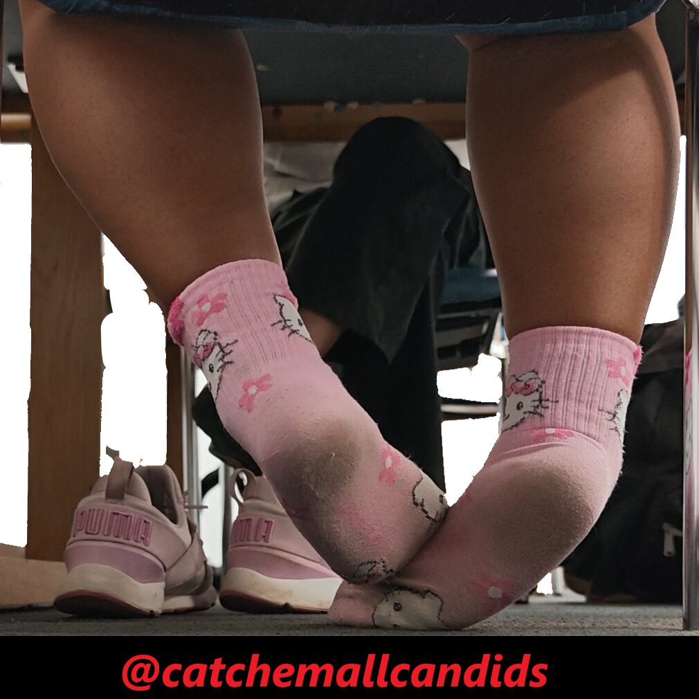 An hour video featuring a latina woman who recently has been seeming to take her shoes off every chance she gets. In this video she has her shoes off in some very dirty and sweaty looking Hello Kitty socks. She was dressed in all pink from head to toe as her socked soles were in full view for the majority of the video switching in different positions. After the hour mark, she puts her sneakers back on, a great video for people who like dirty colored socks.