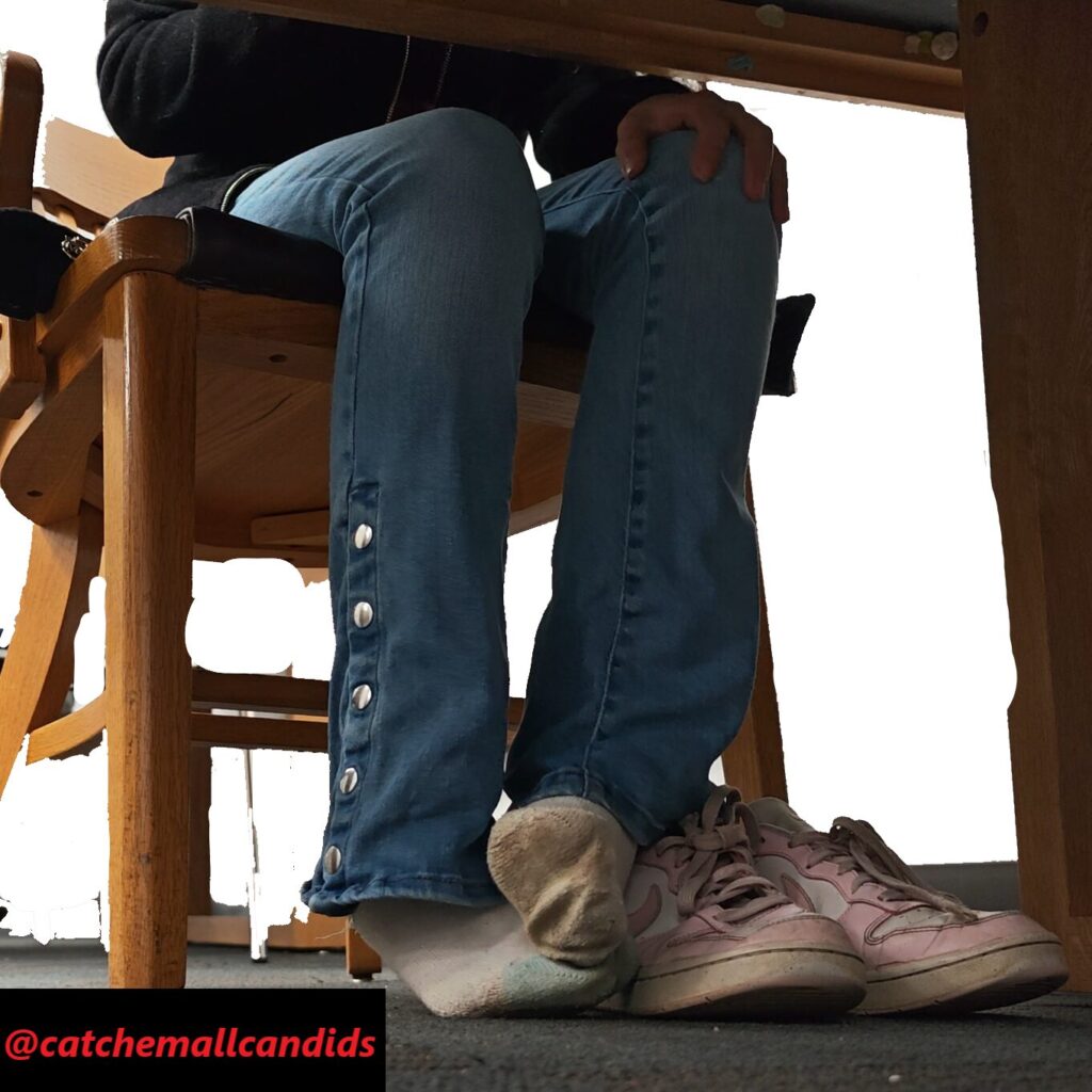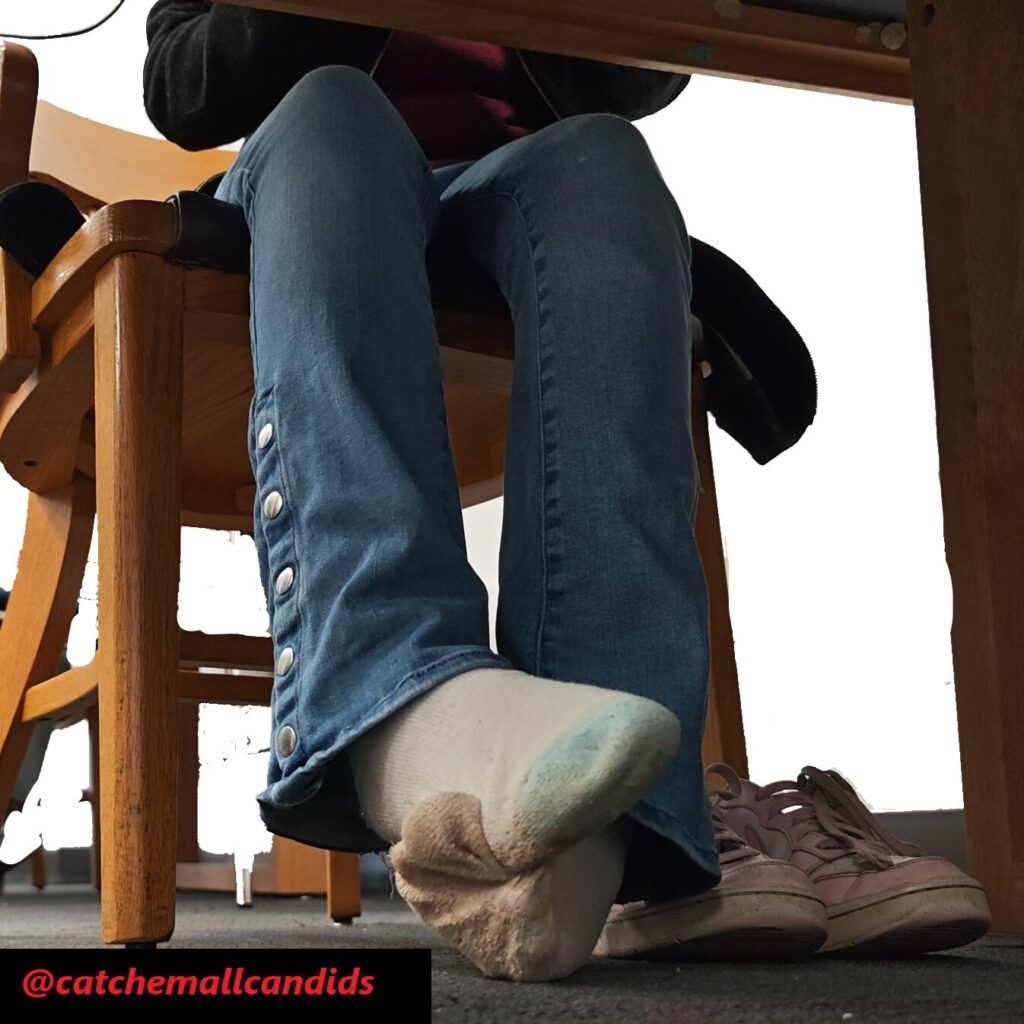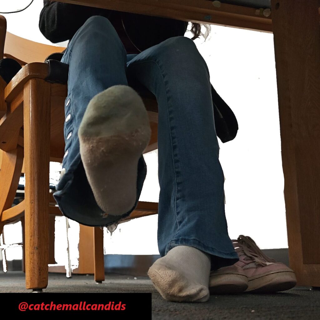 Found this latina to my surprise some of the dirtiest socks I’ve seen. Granted it was a rainy day but I had a catch from her before on a non rainy day and her socks were really dirty then as well. Not as dirty as this, She doesn’t hide her feet at all as she is extremely active in the video after a few minutes. She stretches her feet out, often showing her dirty socked soles, rubs her feet on top of each other, rubs her feet together on top of her shoes and stretches her feet in the air. Constant action for 40 minutes before she puts her sneakers back on.